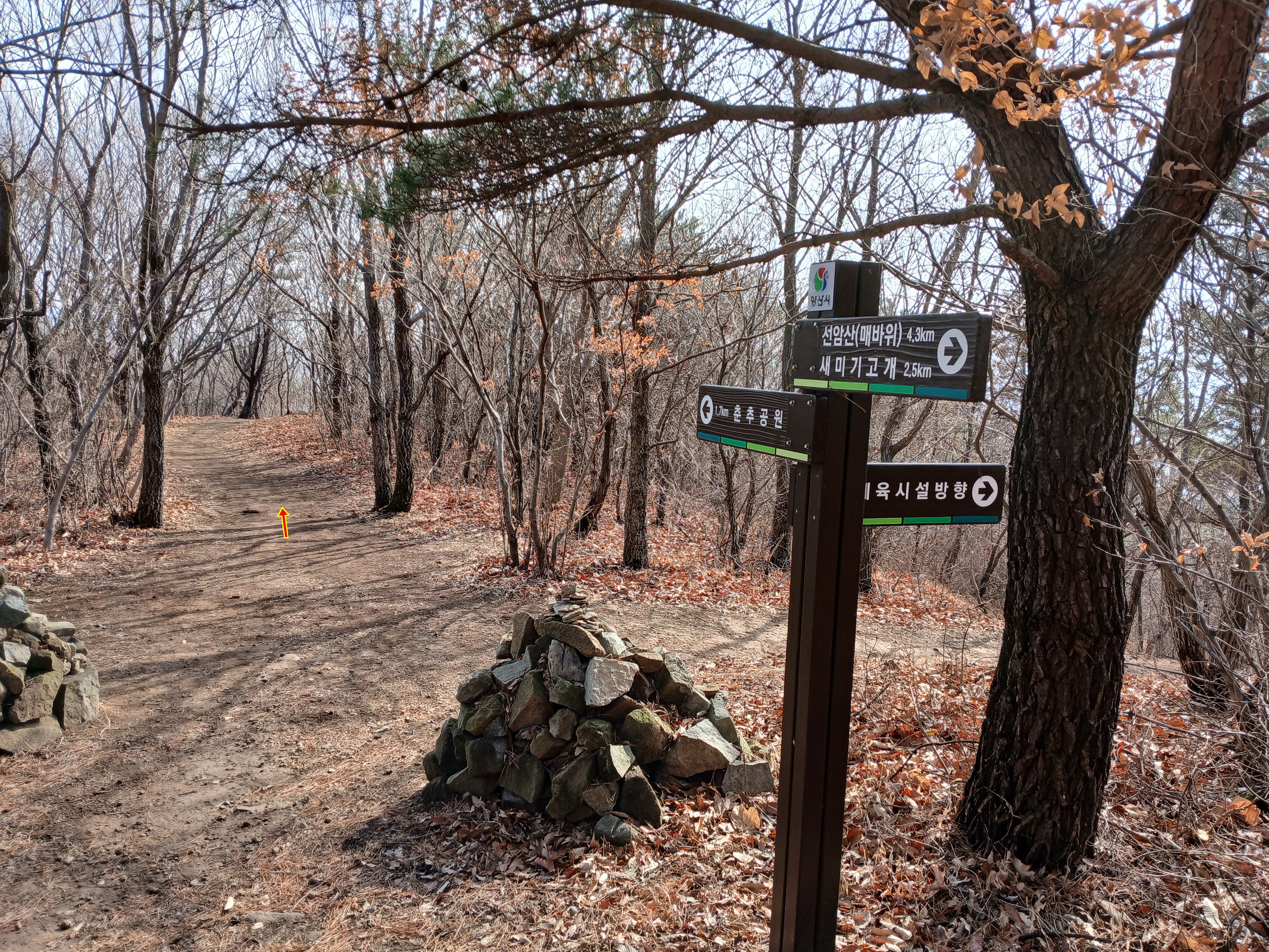 ↓선암산 갈림길 삼거리에서 춘추공원 방향으로 직진한다