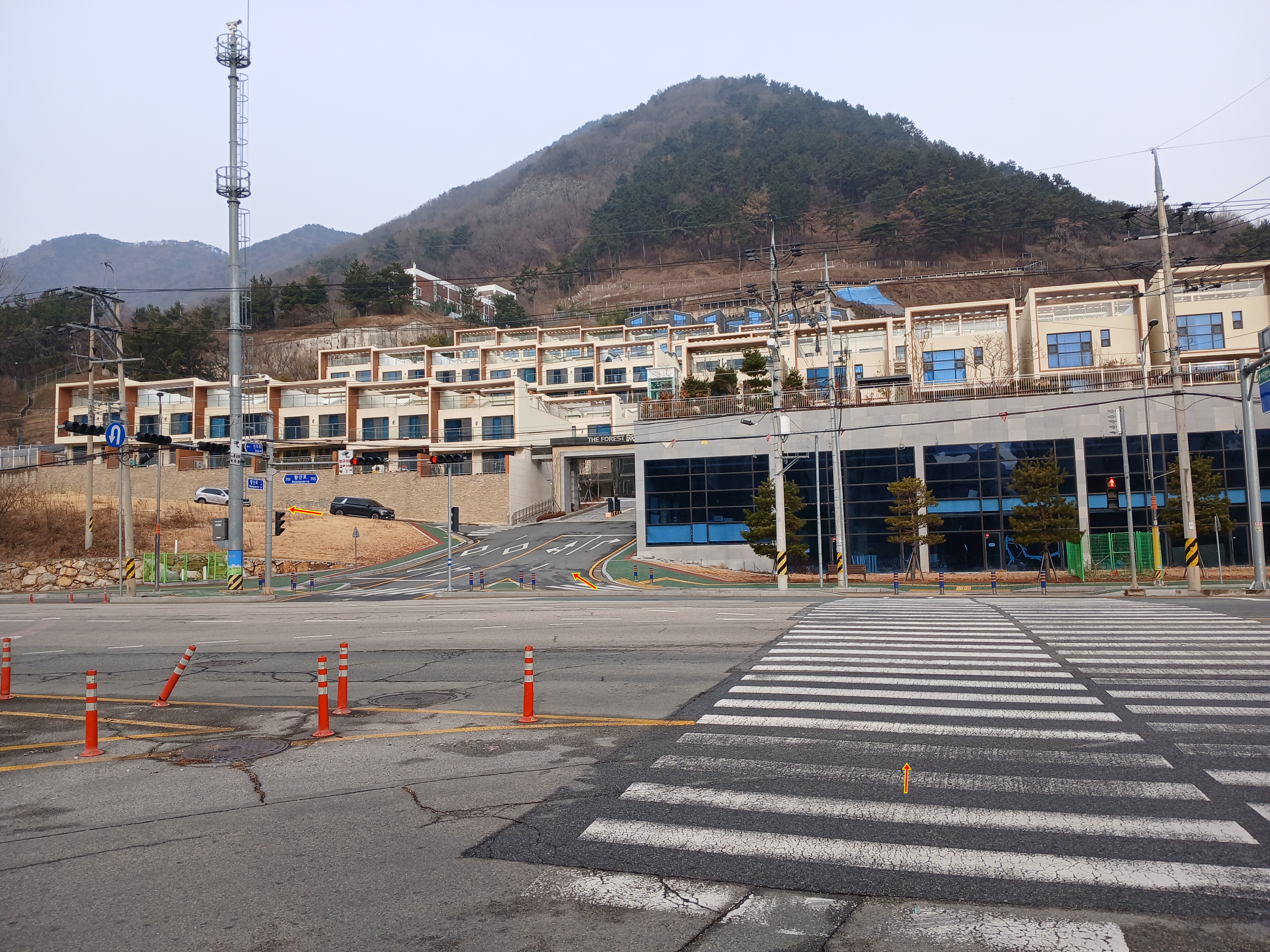 ↓양산 더포레스트엠 아파트 앞에서 좌측 윗길로 진행한다