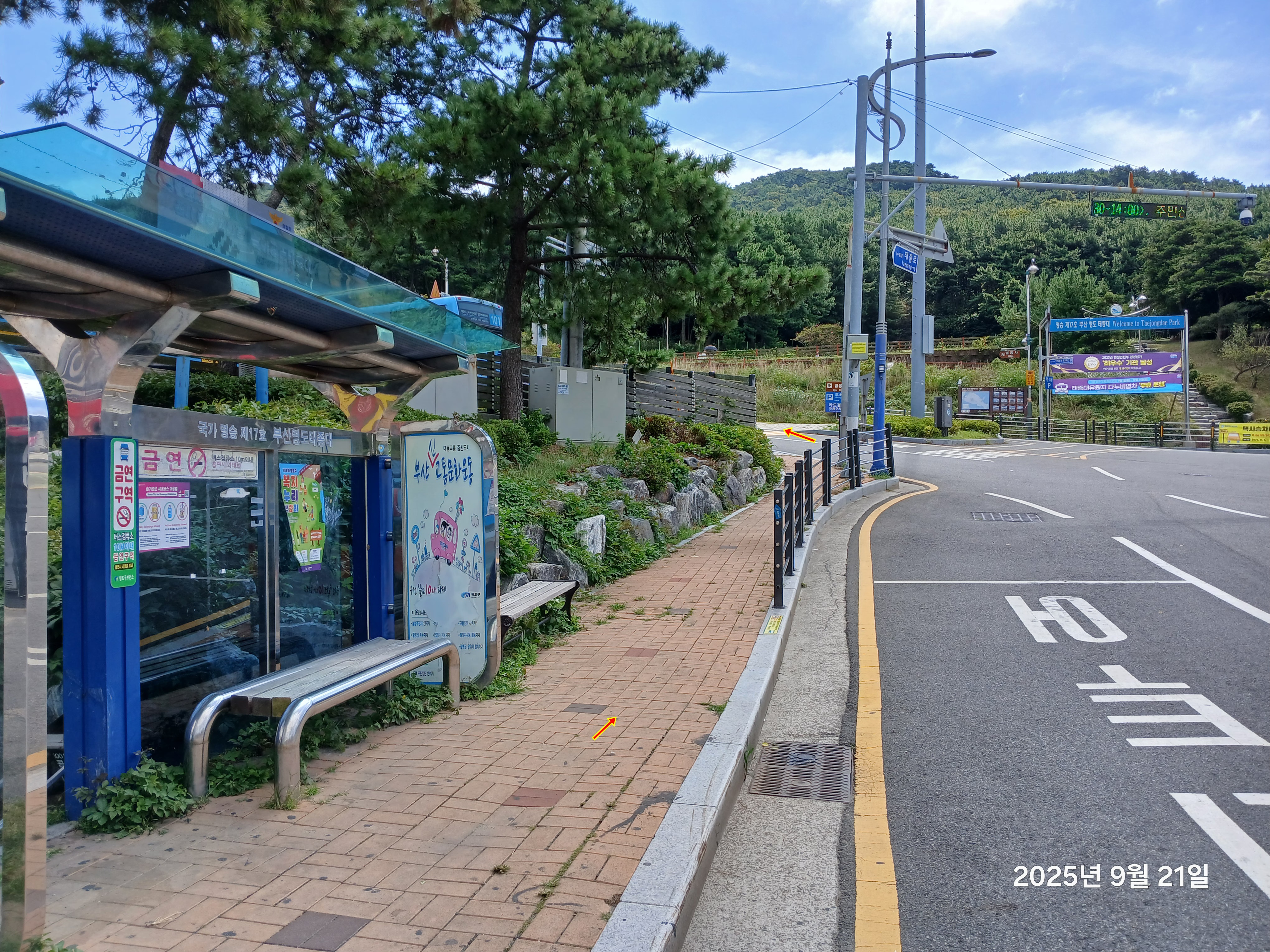 ↓태종대 순환도로 다누비열차 승차장을 지나간다