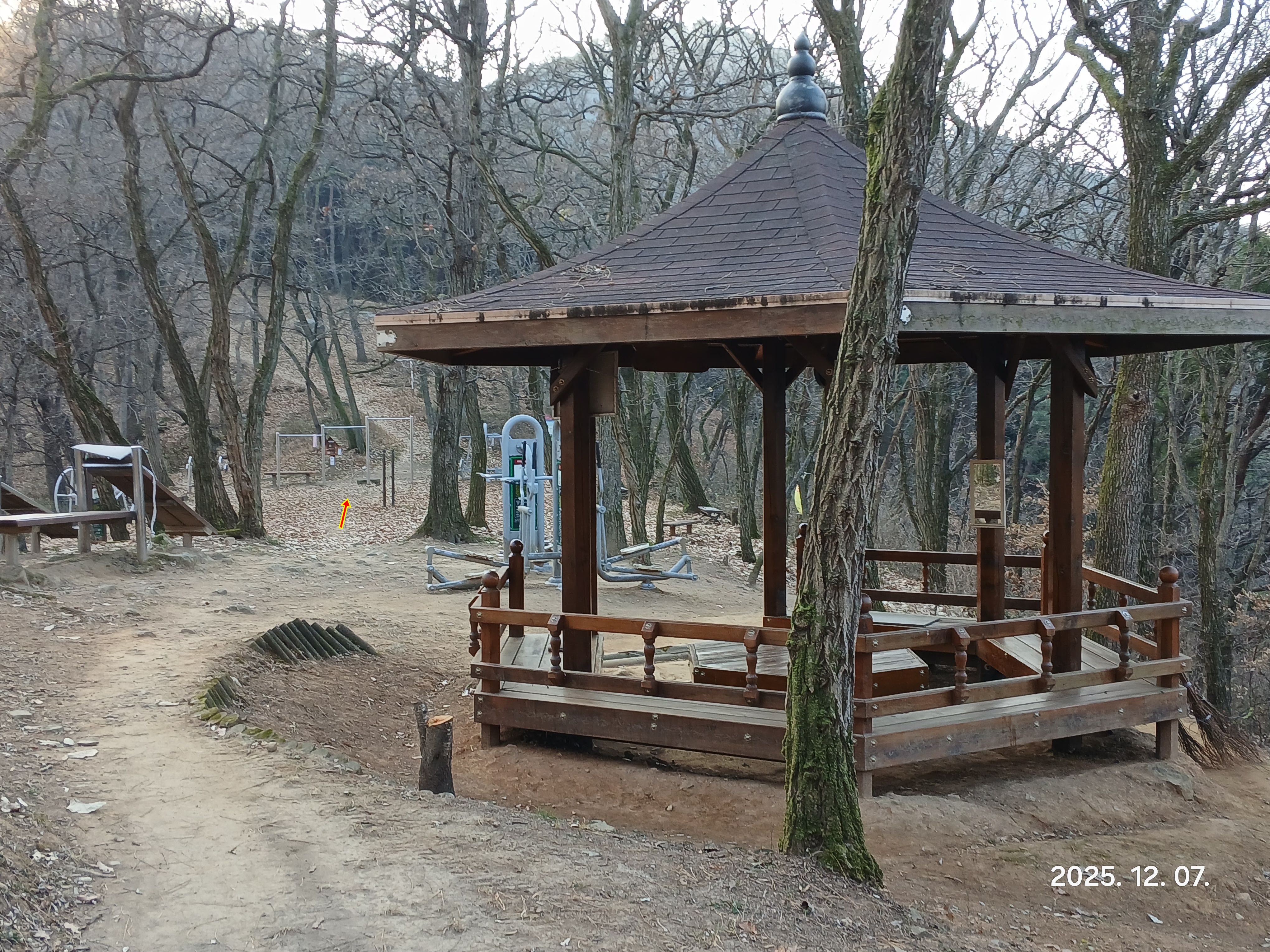 ↓법니산 체육시설을 지나간다