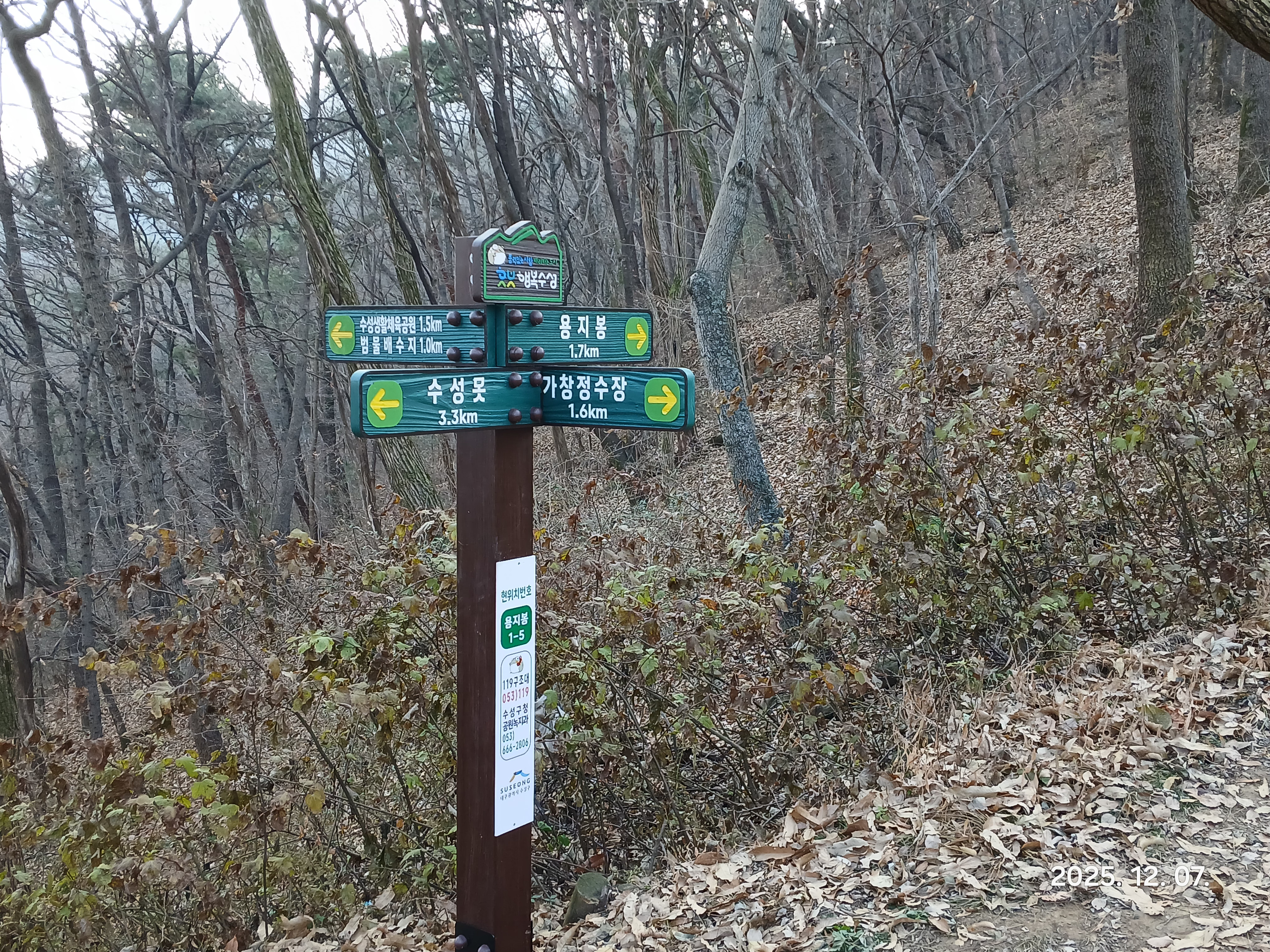 ↓수성못 방향으로 약100m정도 진행하면 CU 맞은편에 등로가있다