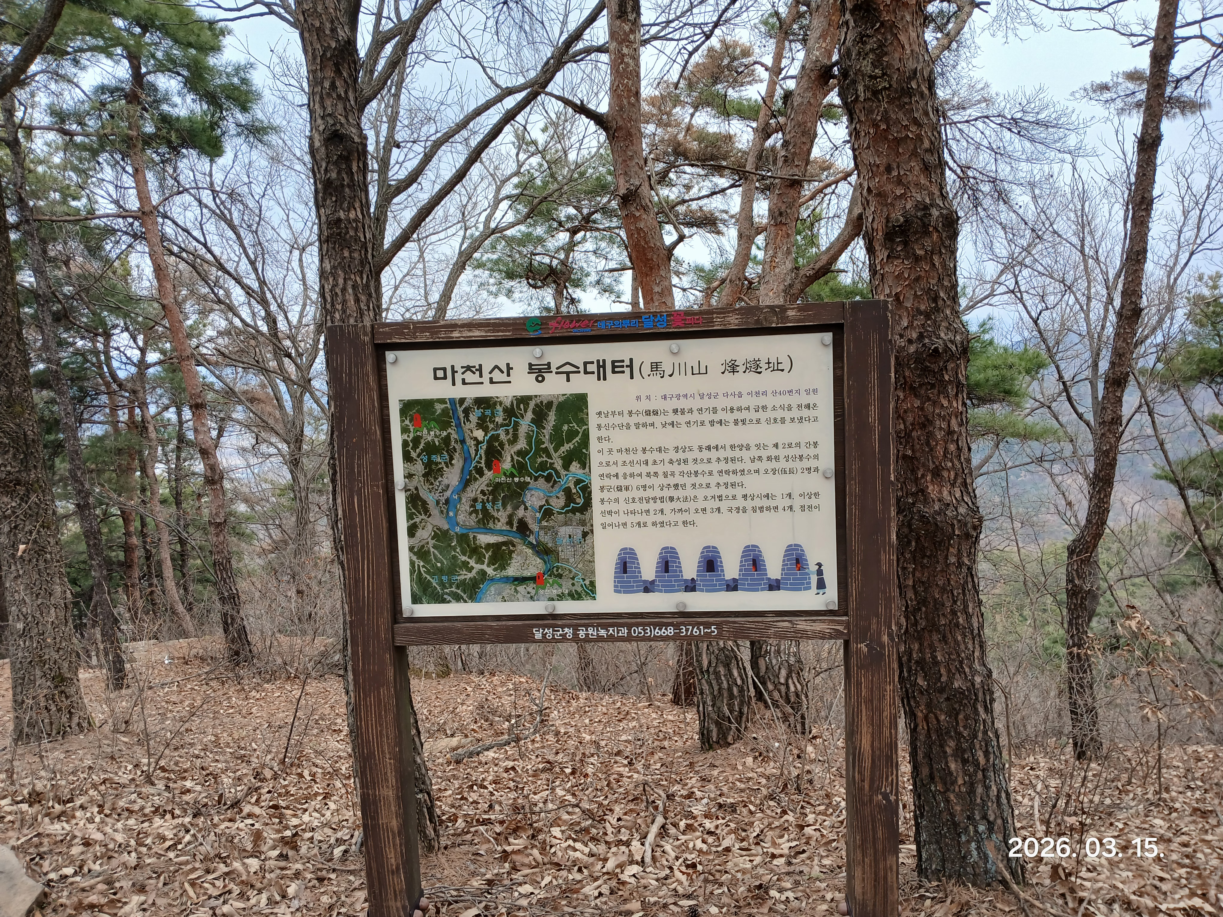 ↓이정표가 있는 삼거리에서 우측으로 올라간다(직진은 봉수대터로 바로가는 등로이고 우측은 봉수대터도 갈수있고 마천산 산림욕장 입구로도 갈수있다)