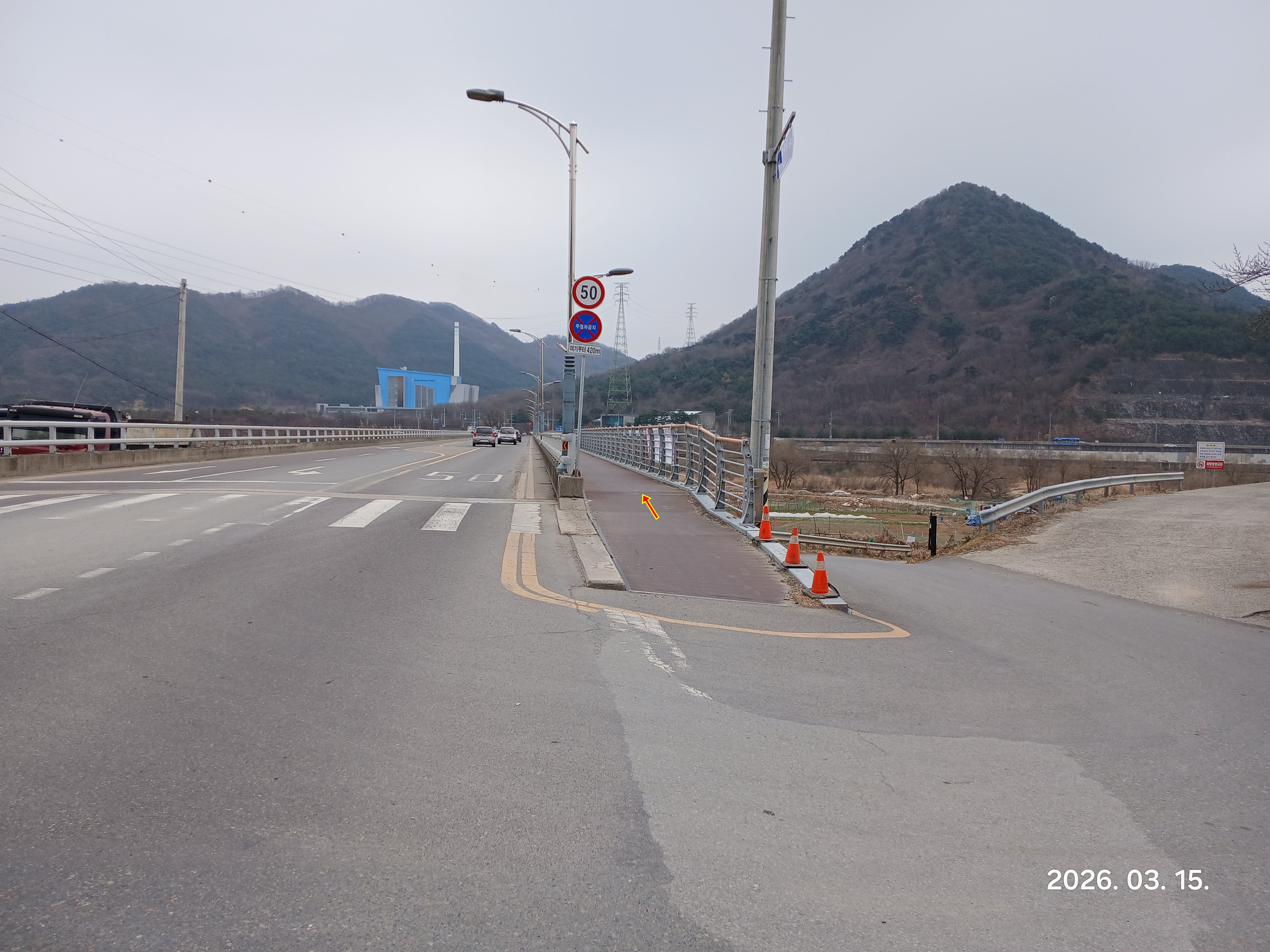 ↓다사로 도로에 내려서 좌측으로 진행한다
