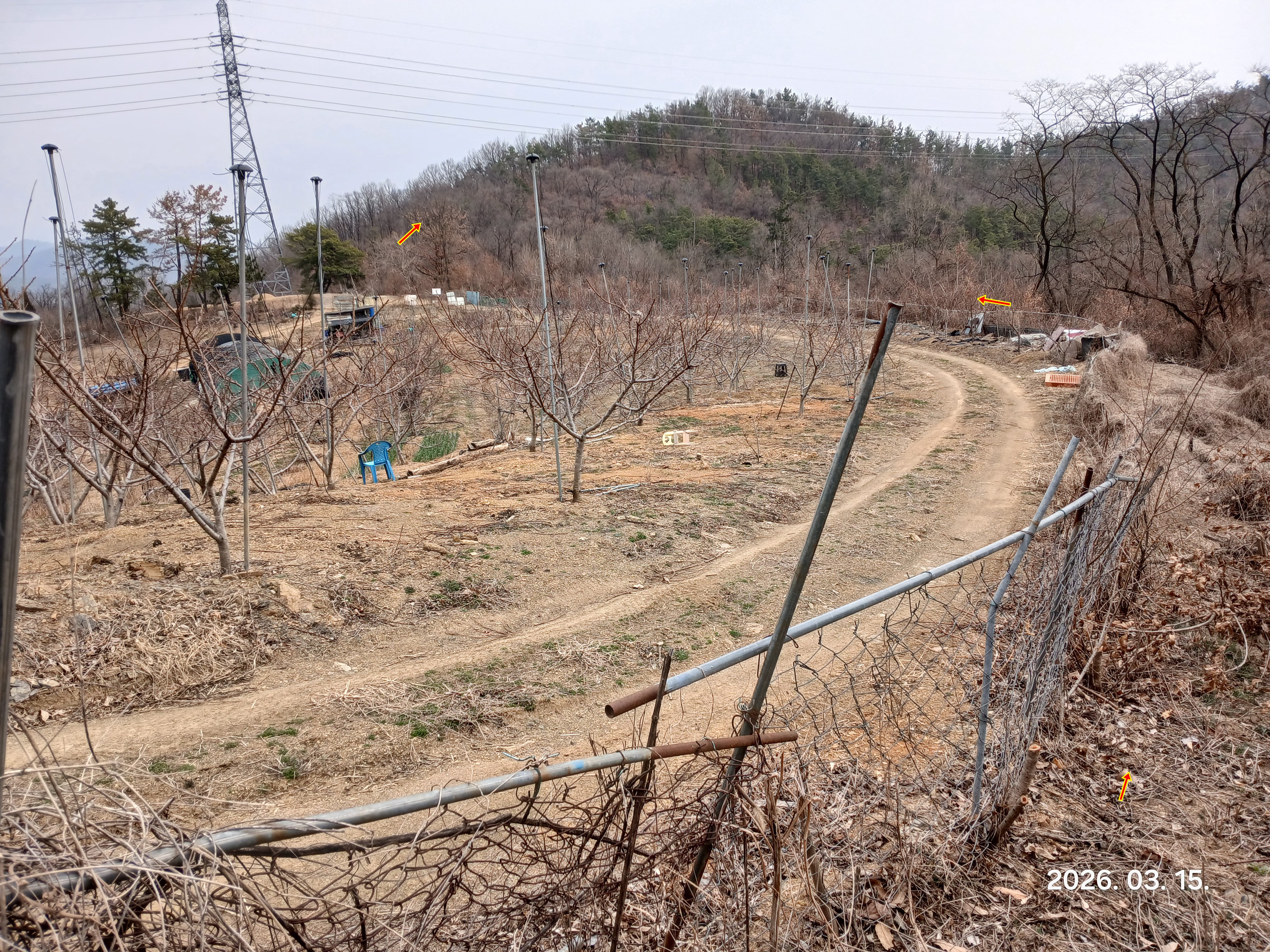 ↓과수원 철조망을 따라 돌아간다
