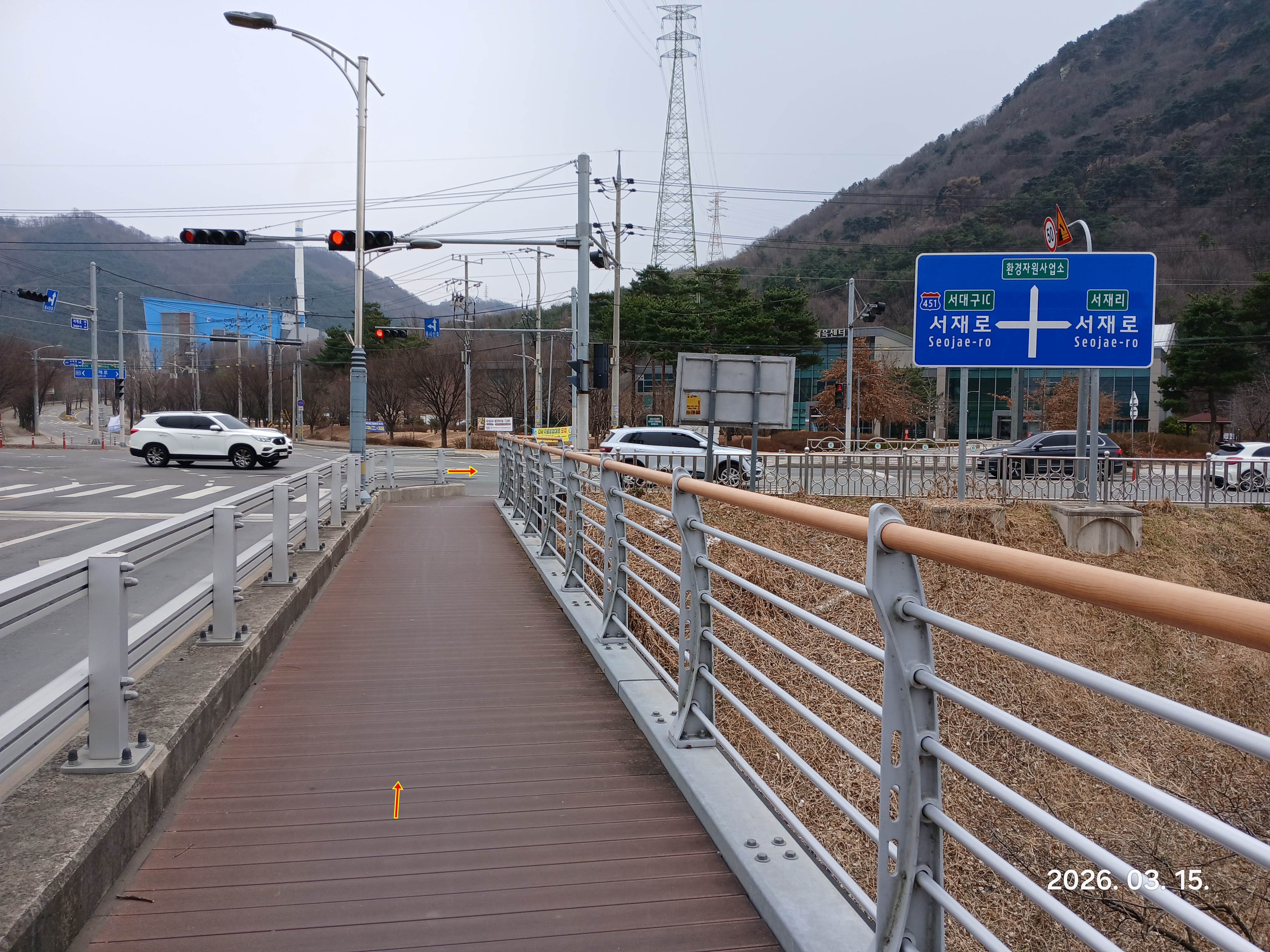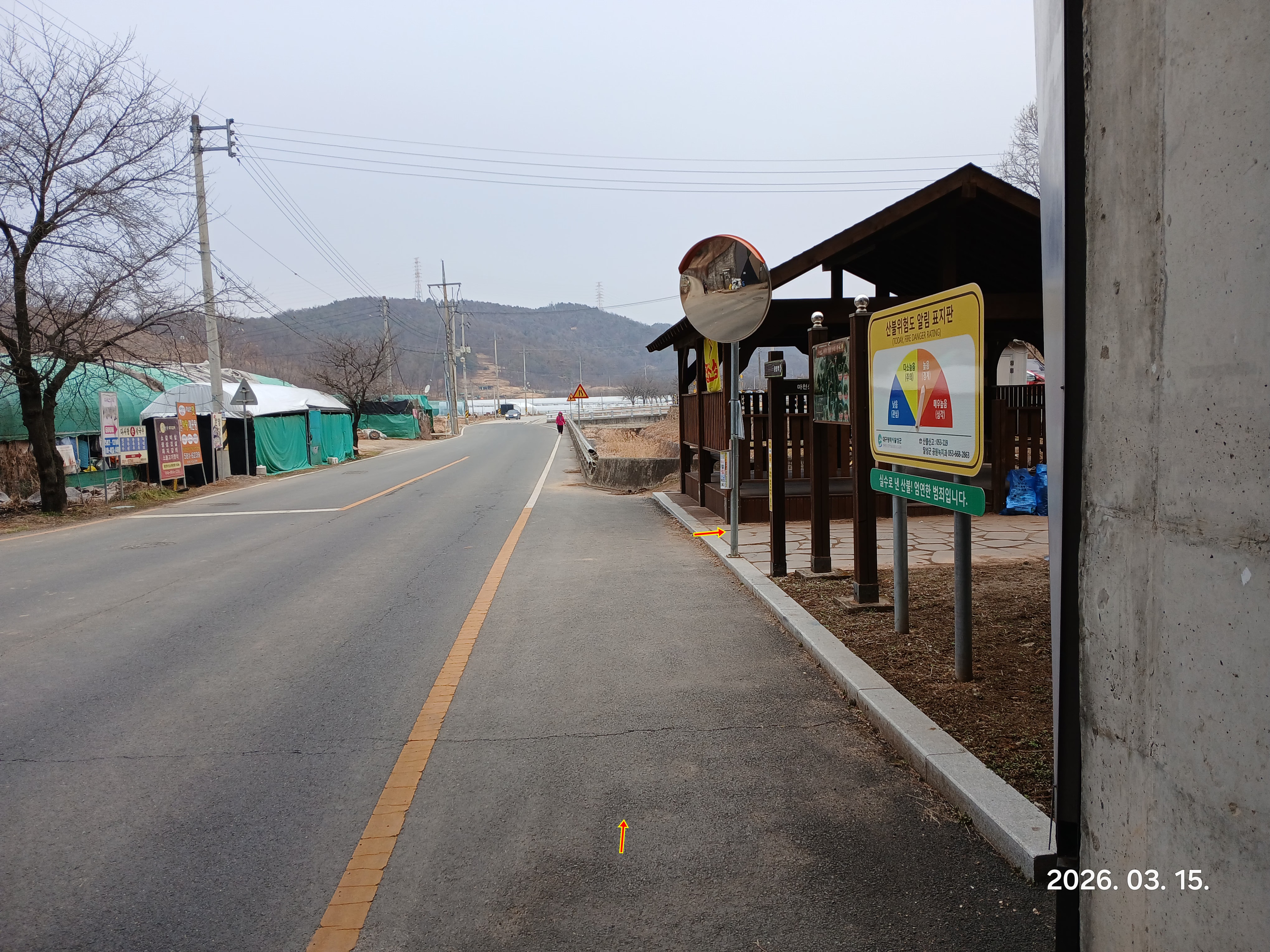 ↓버스 정류소에서 도로를따라 진행방향 좌측으로 진행한다