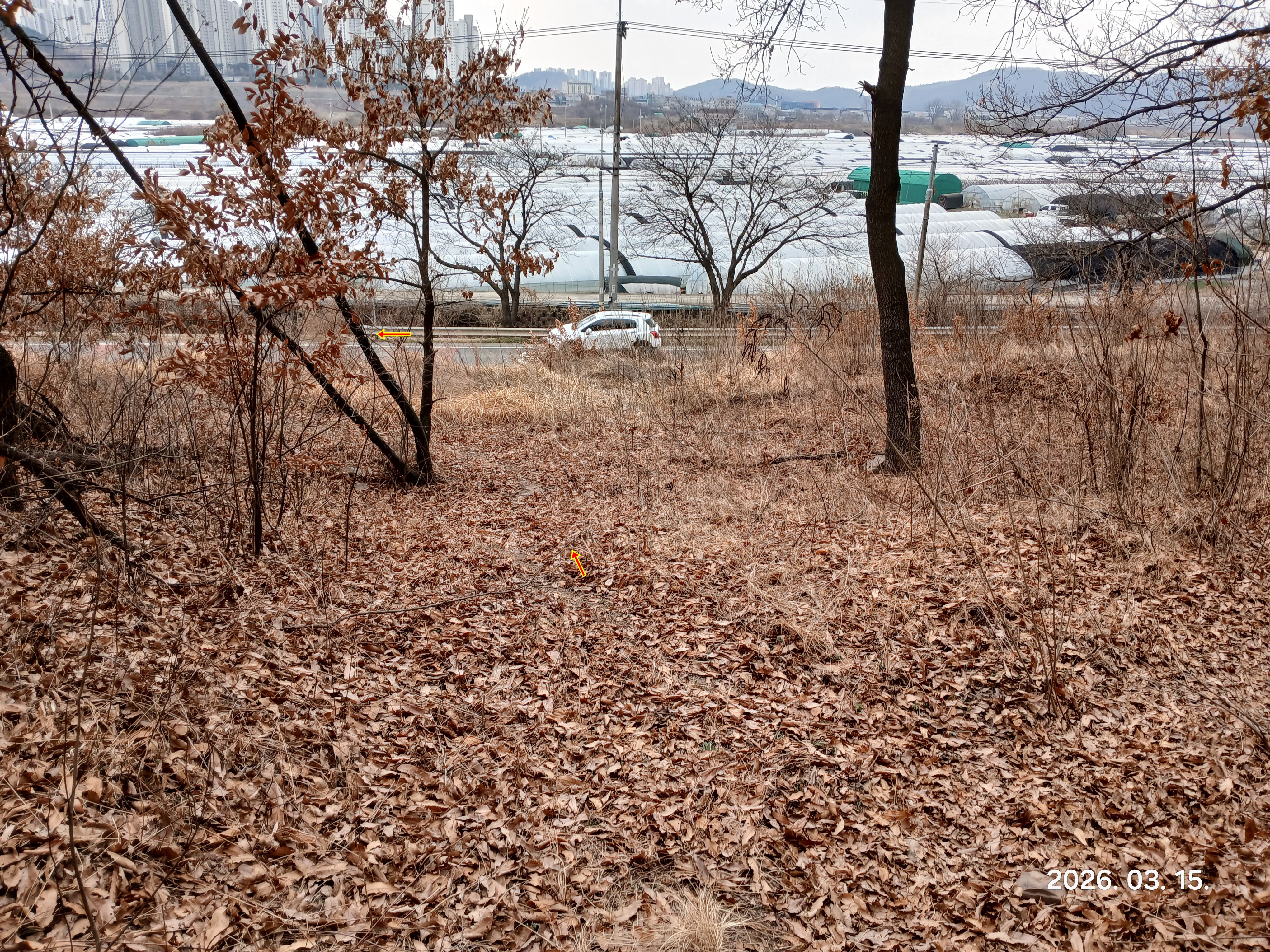 ↓임도를 벗어나 계곡을 건너 계곡을따라 임도에서 직선 방향으로 올라오면된다