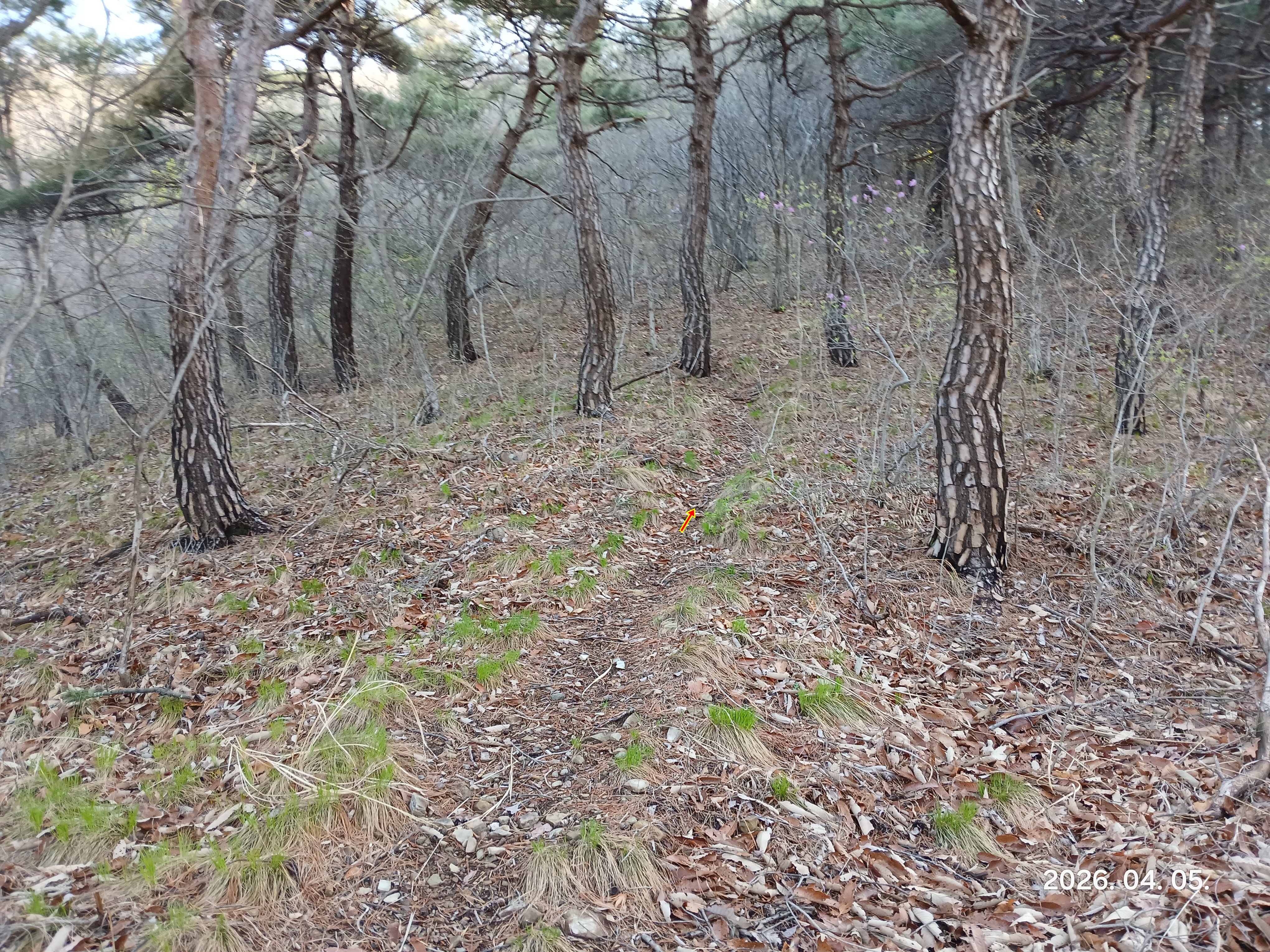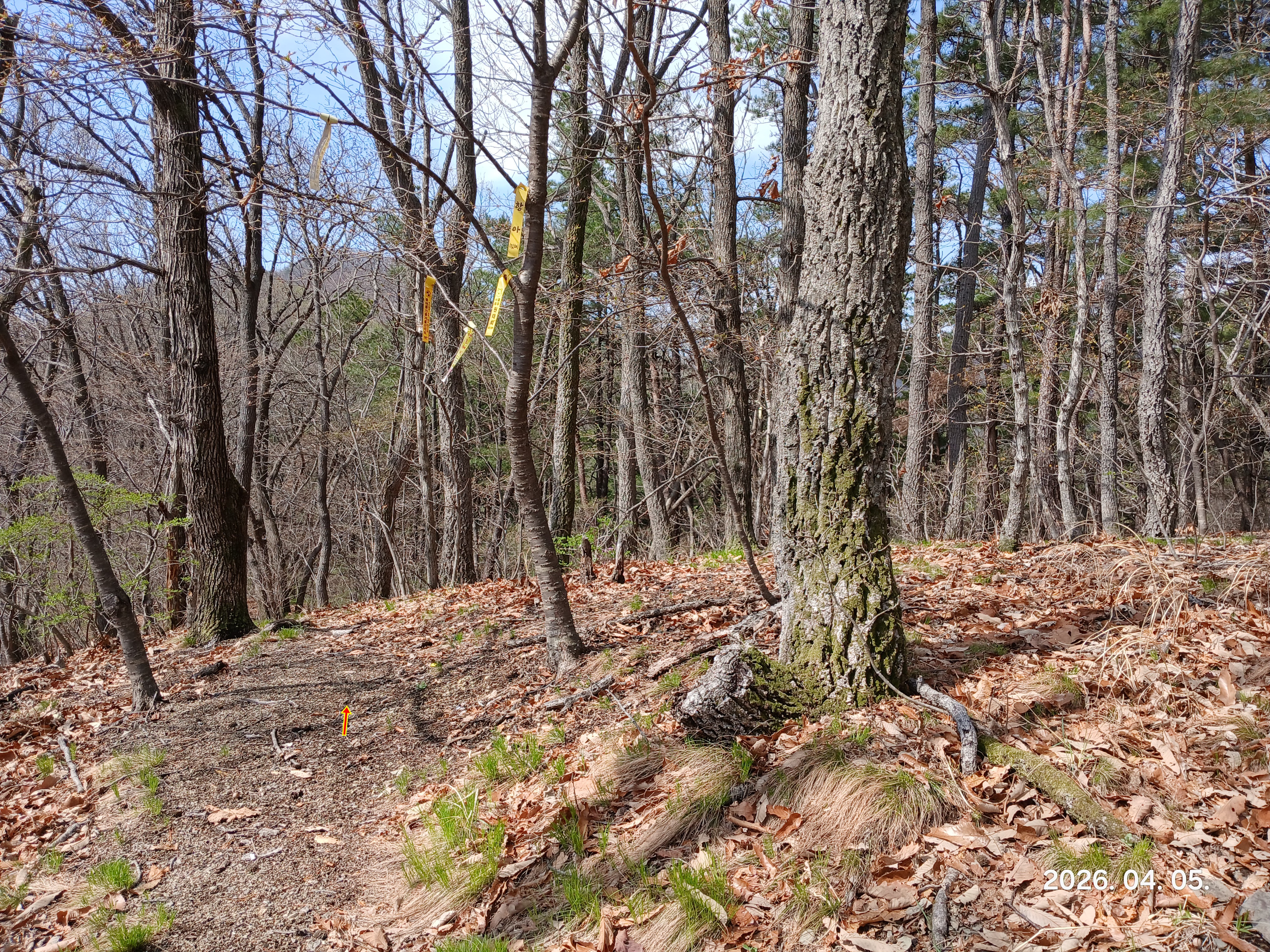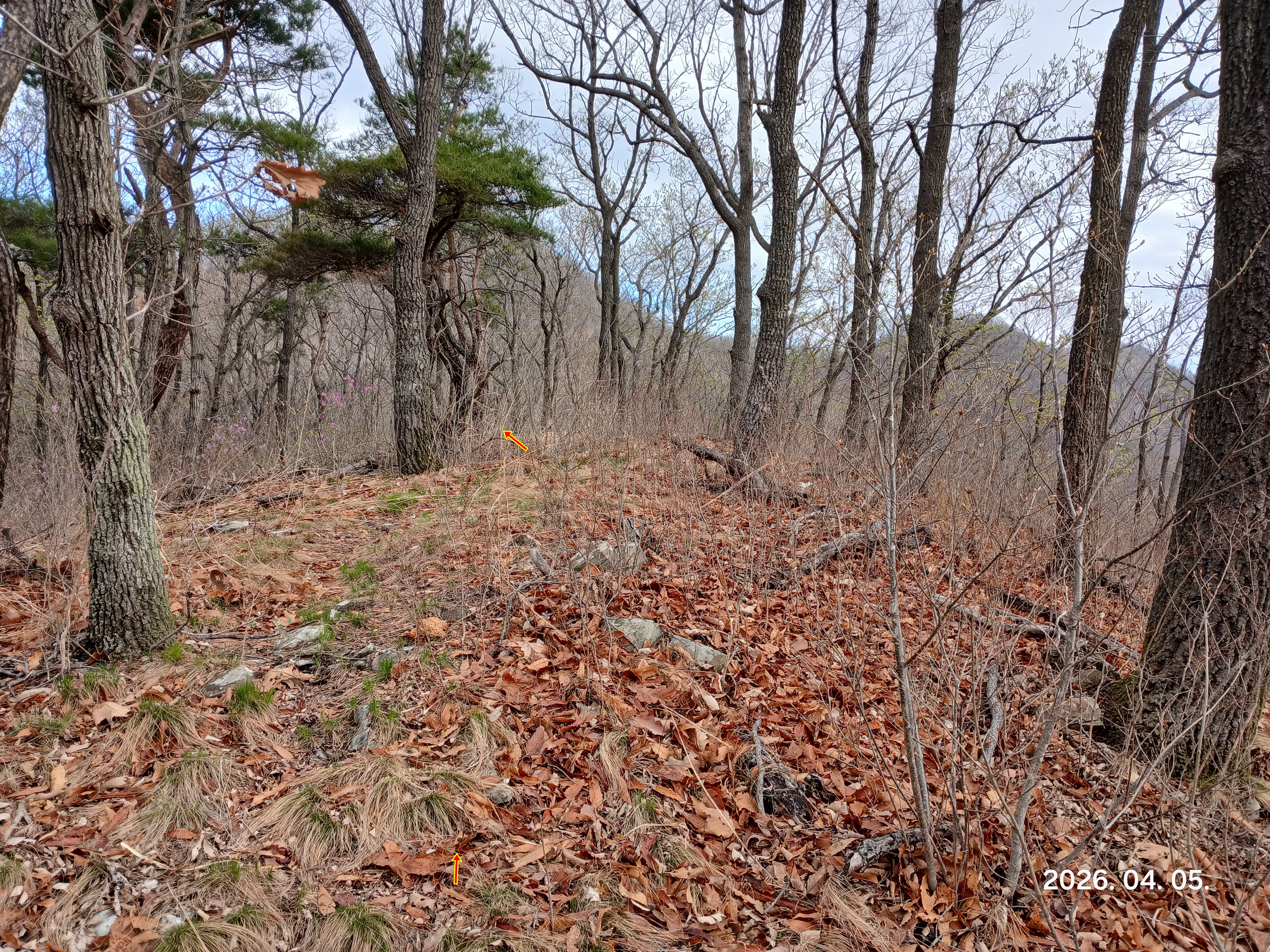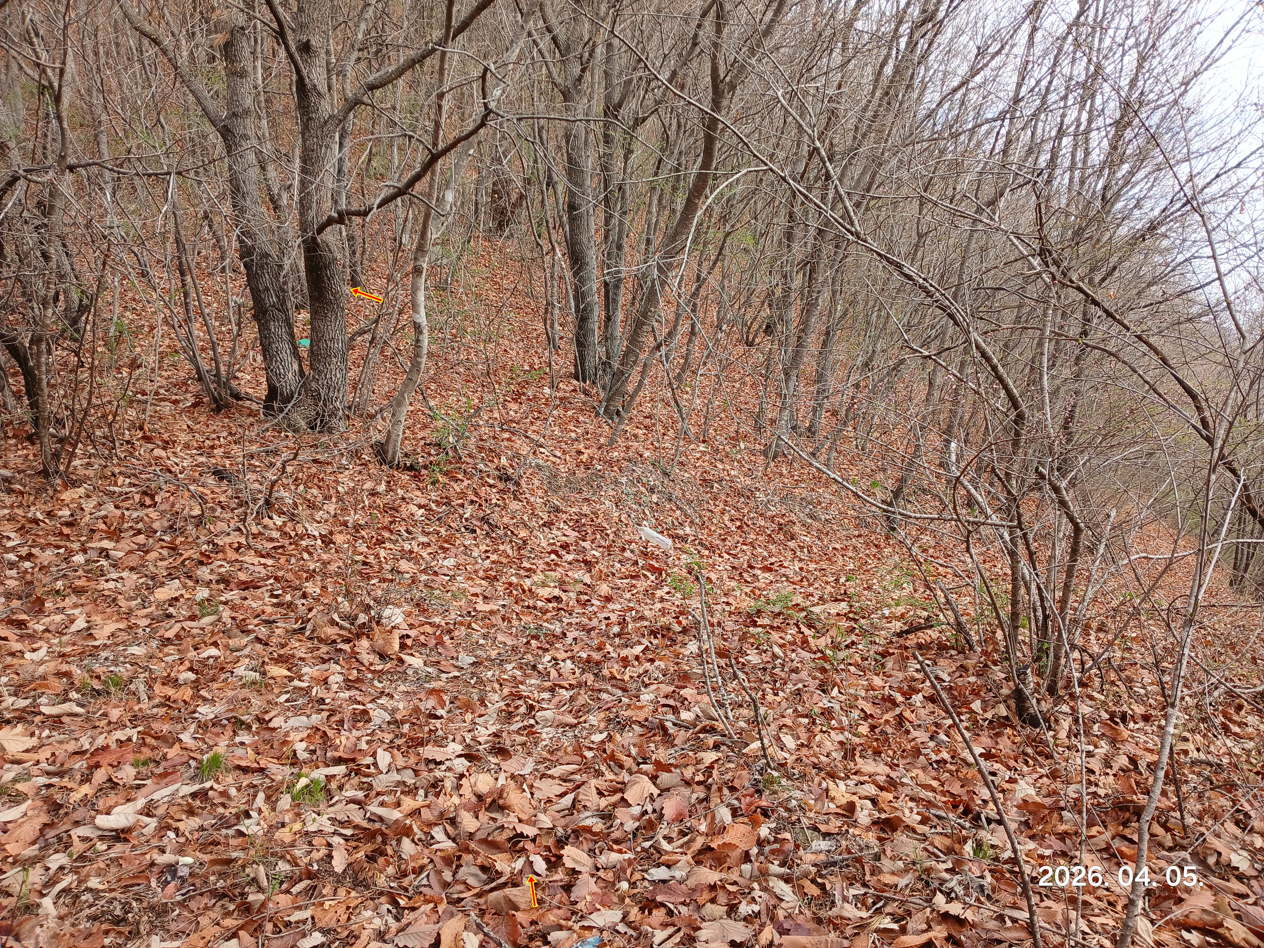 ↓굽어지는 임도에서 길이없는 좌측 능선으로 올라야 한다