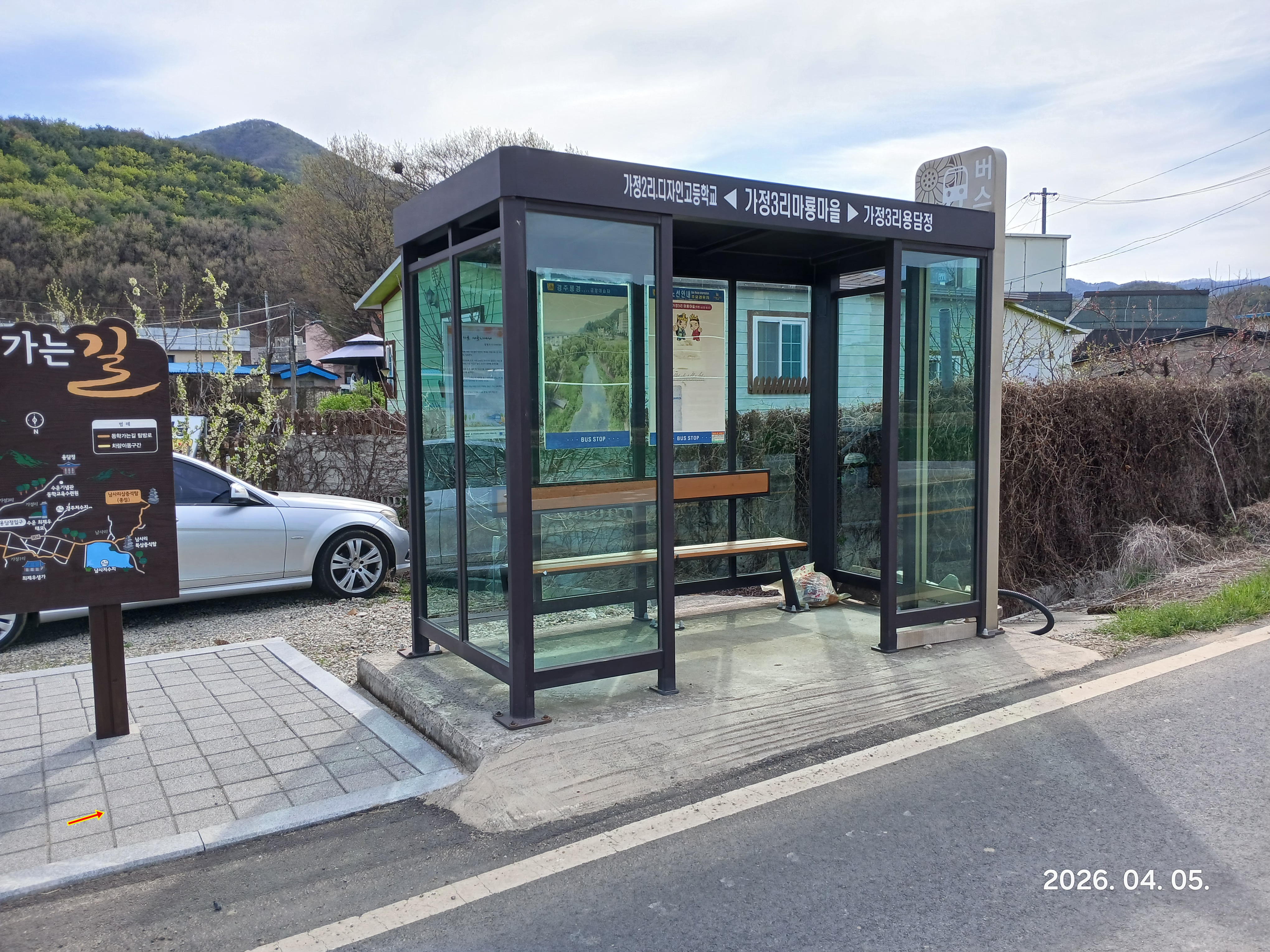 ↓마룡마을,가정3리 버스 정류소에서 오늘 산행을 종료한다
