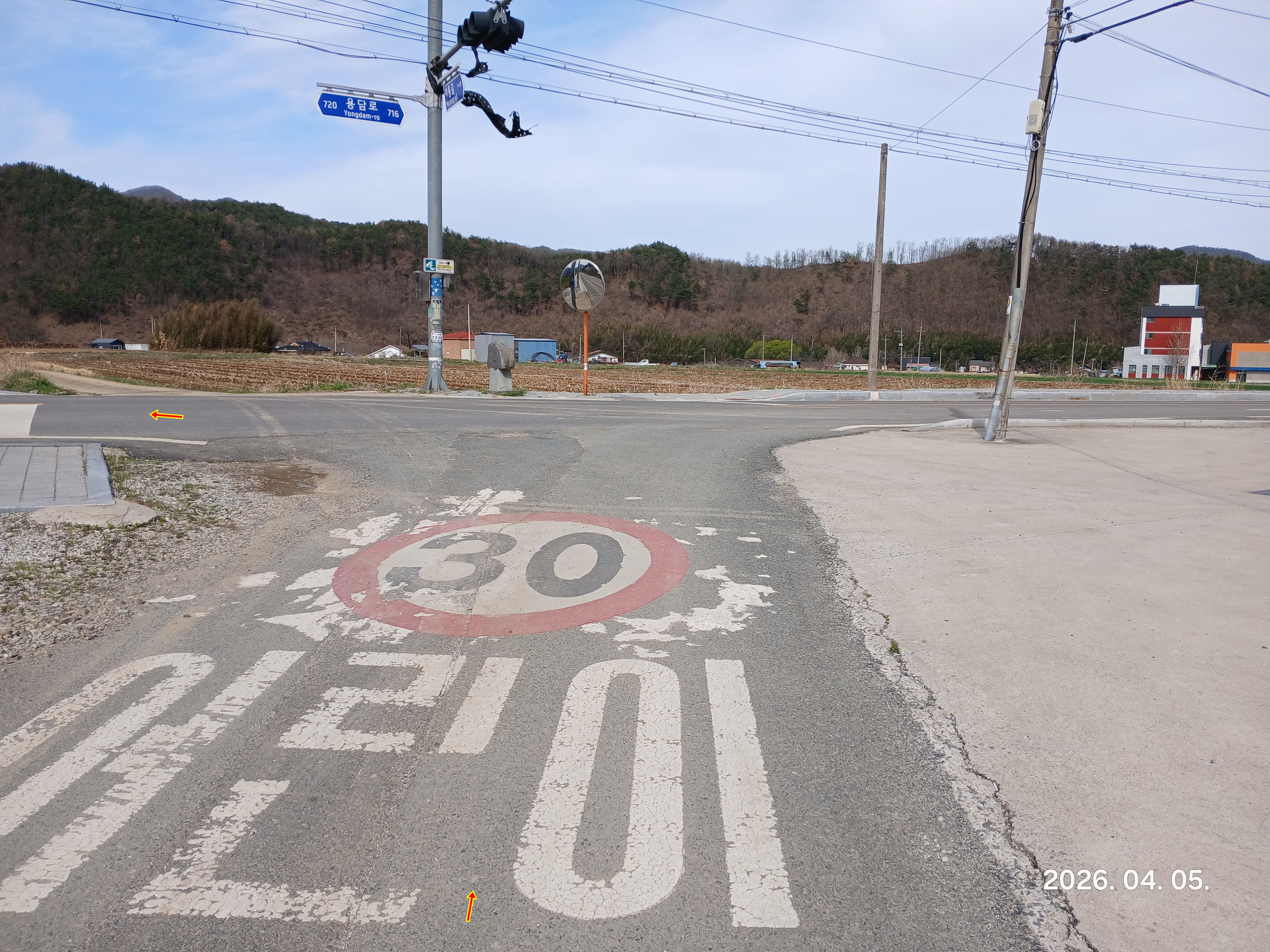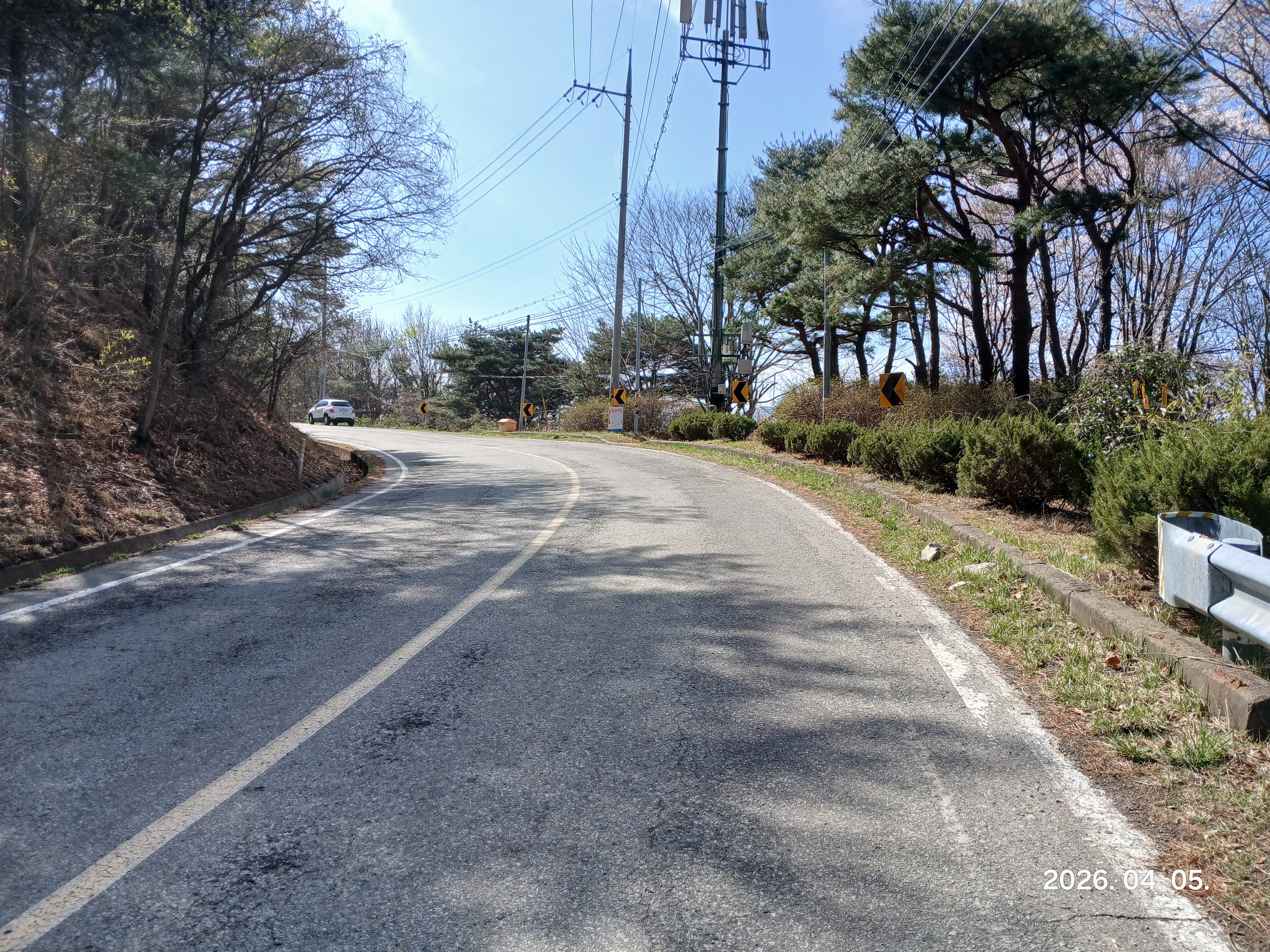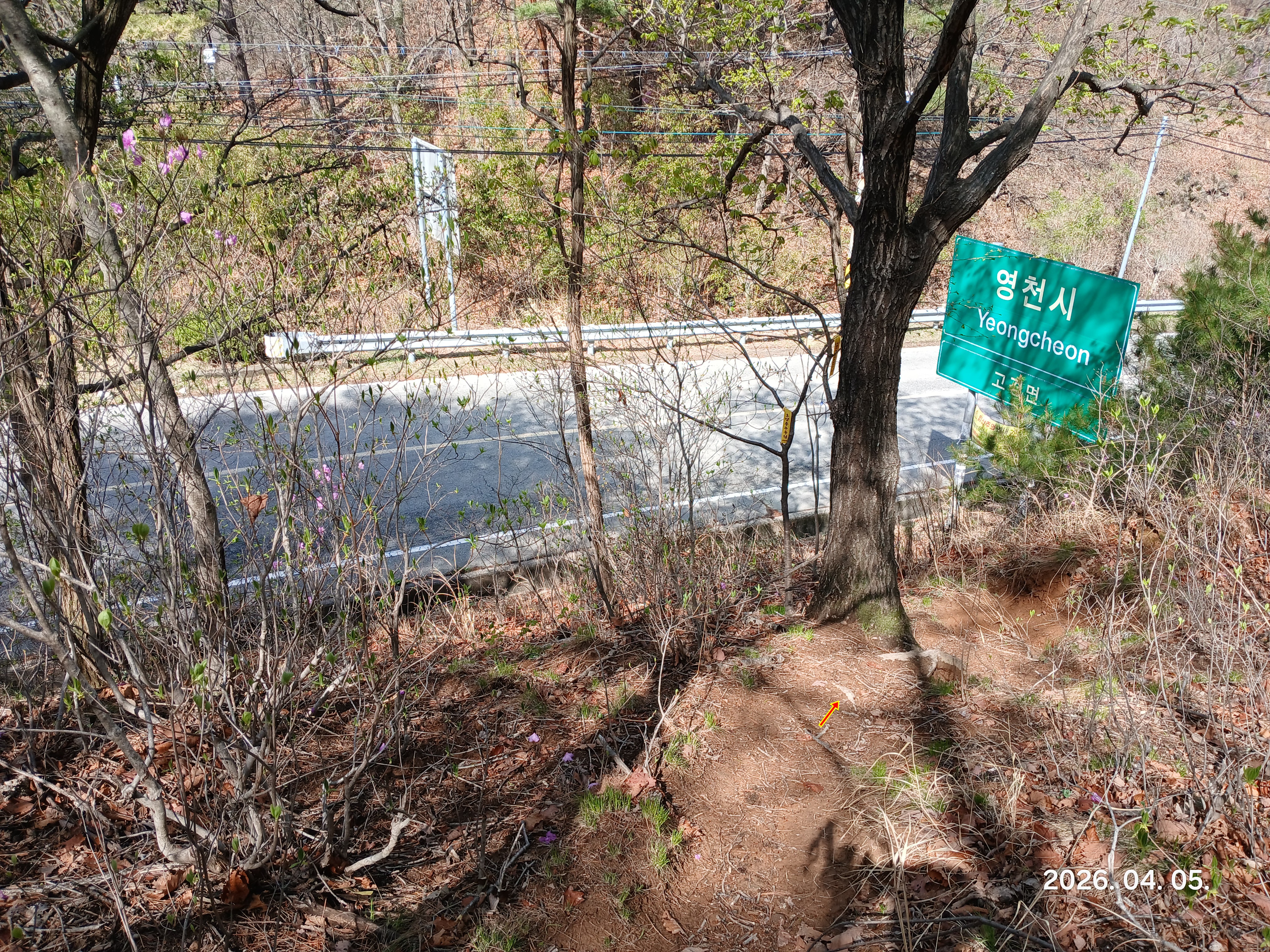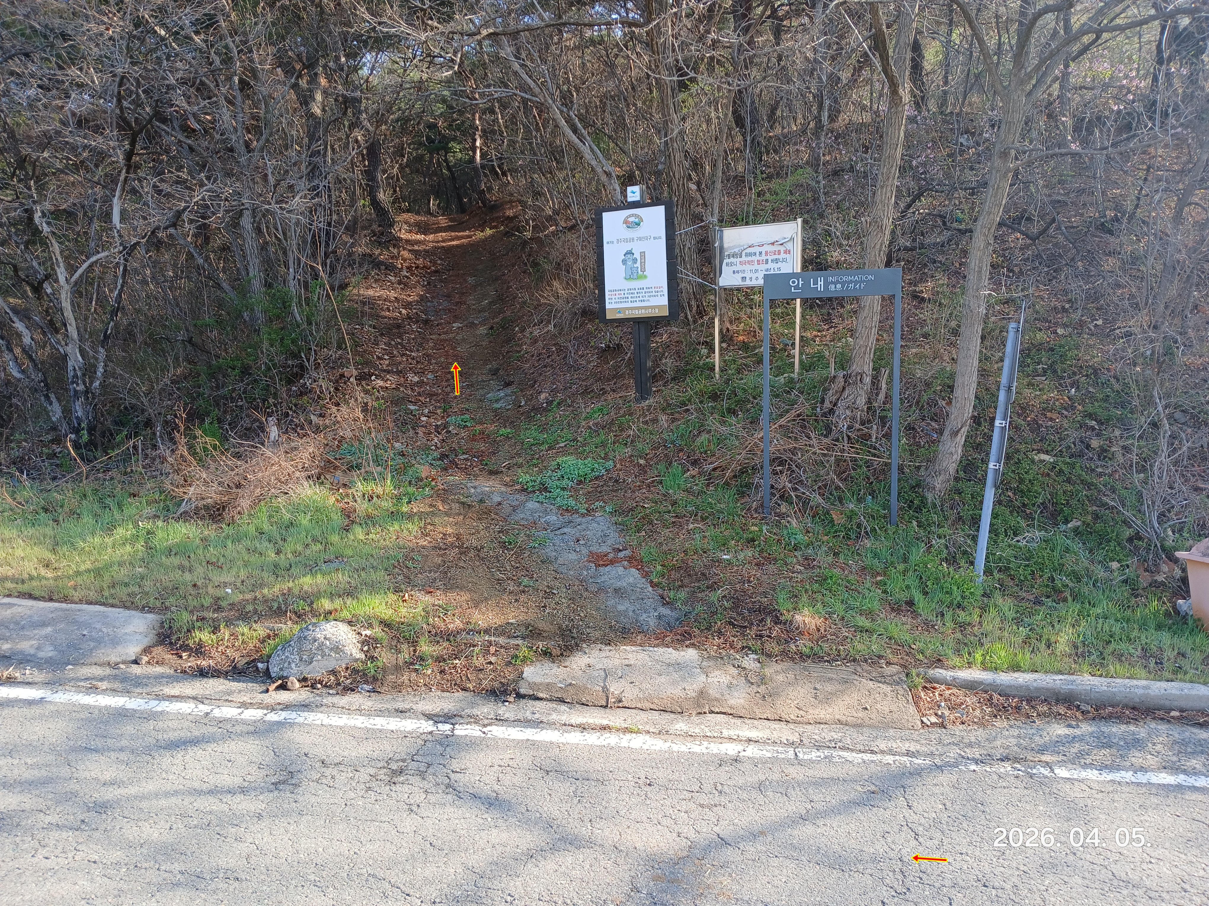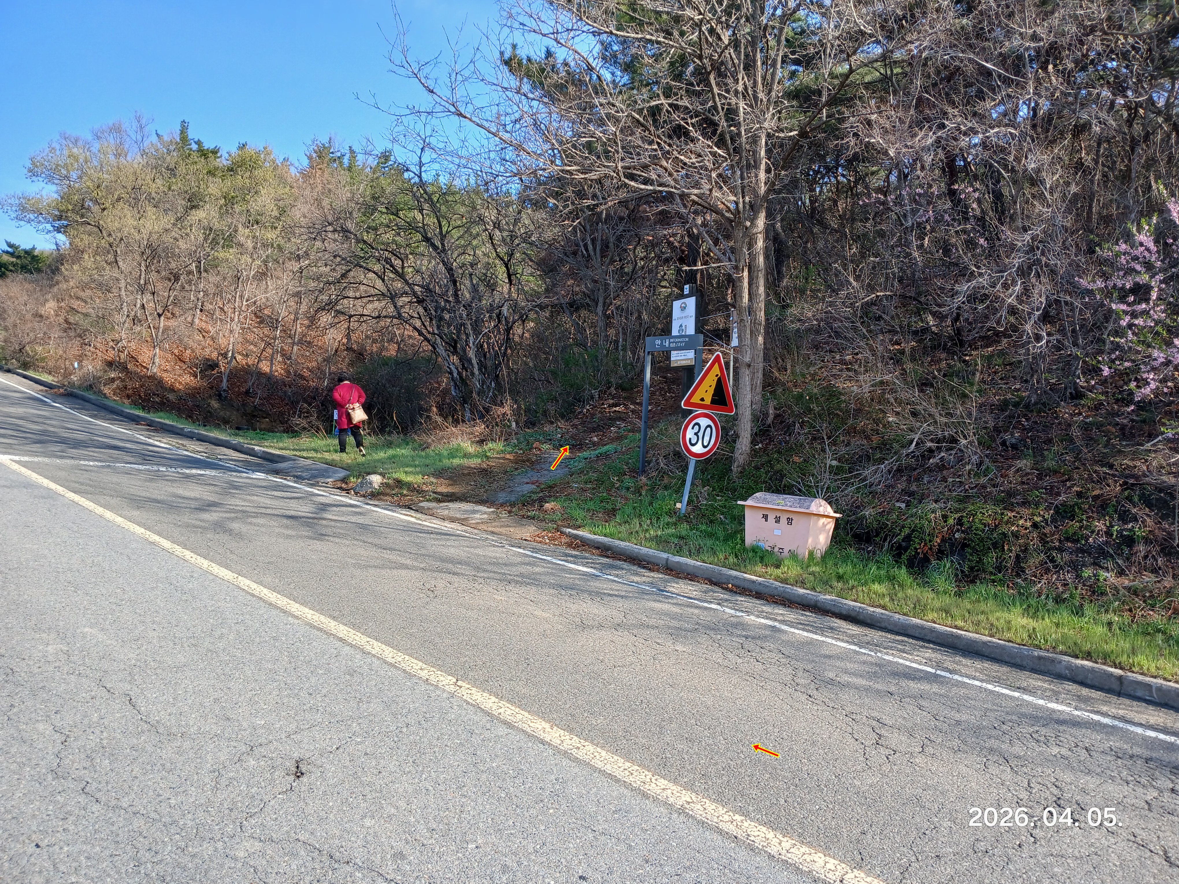 ↓도로에 교통 표지판이있는 이곳에서 우측 산으로 오른다